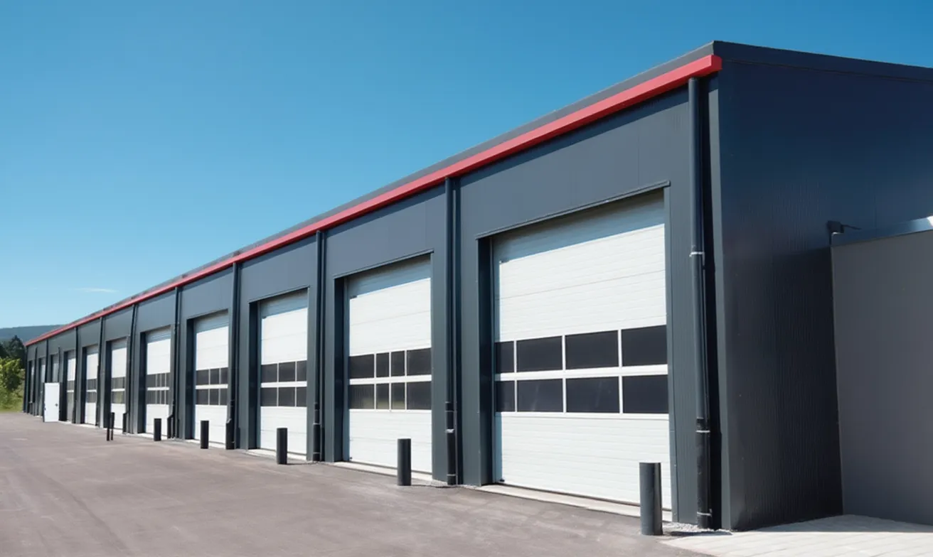 Дополнительно монтируются системы освещения, вентиляции, отопления (электрические или водяные конвекторы), противопожарные датчики. Ворота подбираются по типу (распашные, откатные, секционные) и размеру — вплоть до панорамных решений для автосервисов.